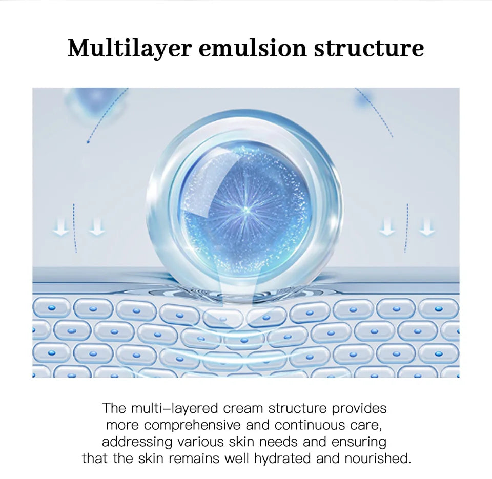 Its multi-layered cream structure offers a through and lasting skincare by catering to various skin needs, ensuring continuous hydration and nourishment.
