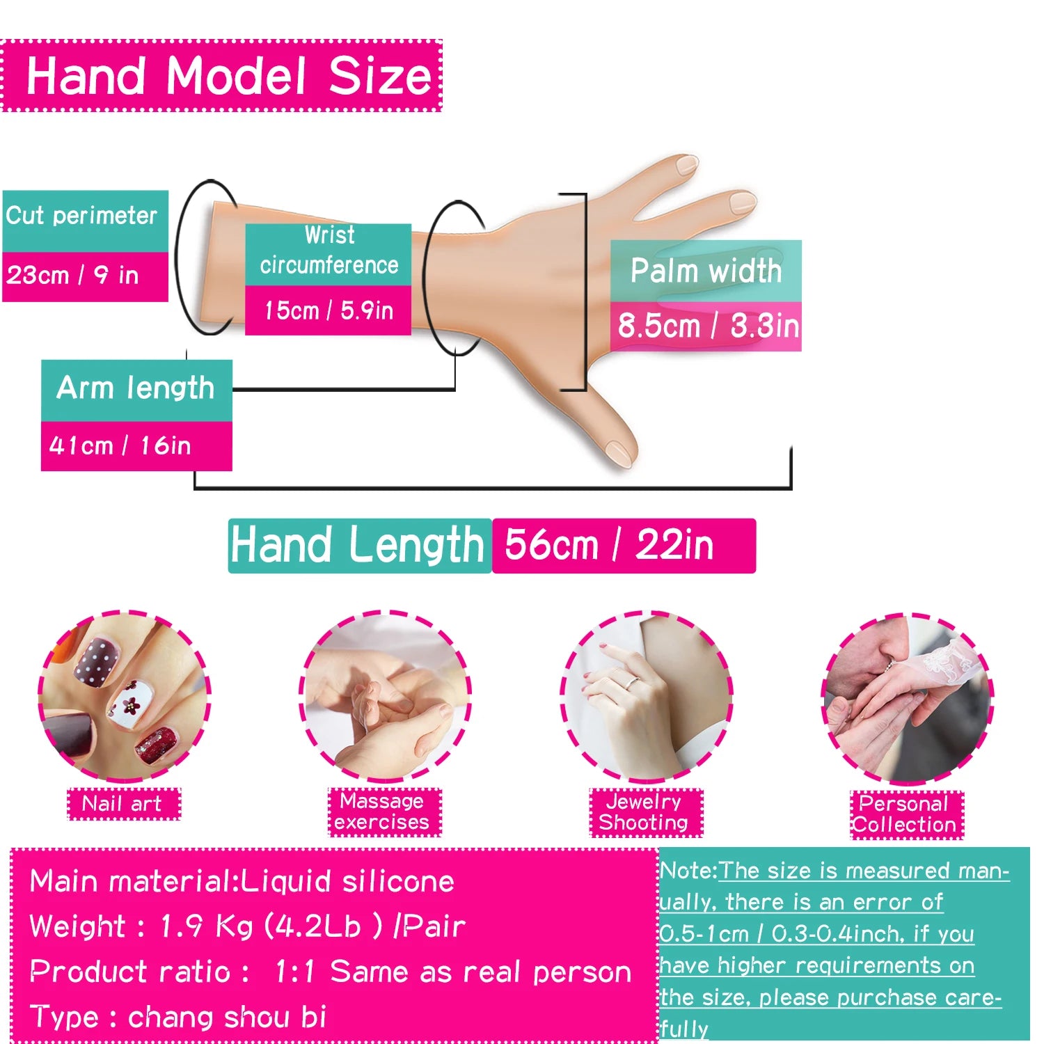 Description: Female Nail Practice Hand Finger Bendable Long Hand Mannequin Arm Soft TPE Hand Model For Photograph Jewelry Display LAM01