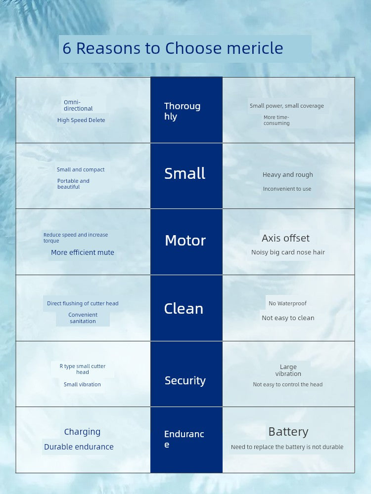 Description: Mericle Electric Nose Hair Trimmer Men Nose Shaving Female Male Handy Gadget Rechargeable Nose Shaving Scissors